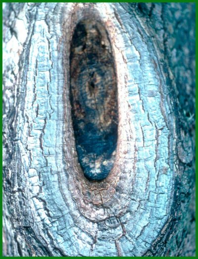 Here, after a large branch was remove several year ago, large fast growing woundwood formed. Not so good closure for the tree.