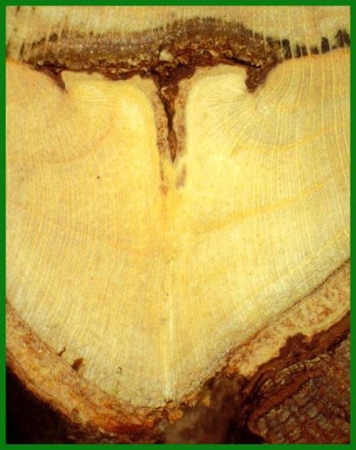 This oak had rapid closure and it grew into itself. Cracks form first and the fungi follow the cracks.